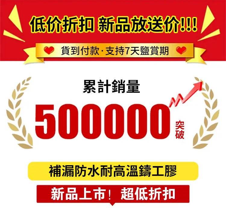 4分鐘前【補漏防水耐高溫】強力雙管鑄工膠 - 【秒殺】6件HK$359